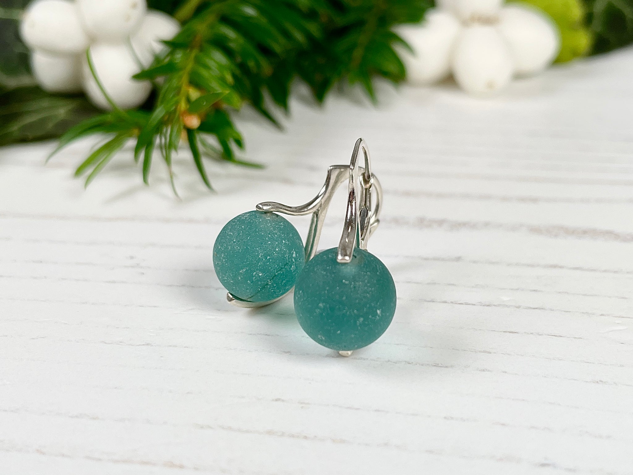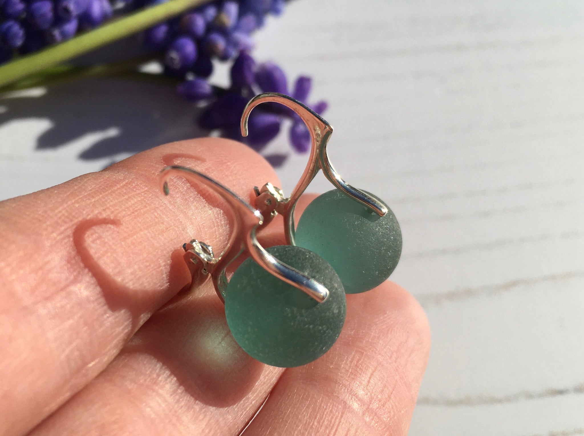 ULTRA RARE Ocean colour dark aqua sea glass marbles set in a sterling silver lever back settings. These sea glass codd marble earrings are truly outstanding. The marbles hang just below your earlobe, very much like pearls.