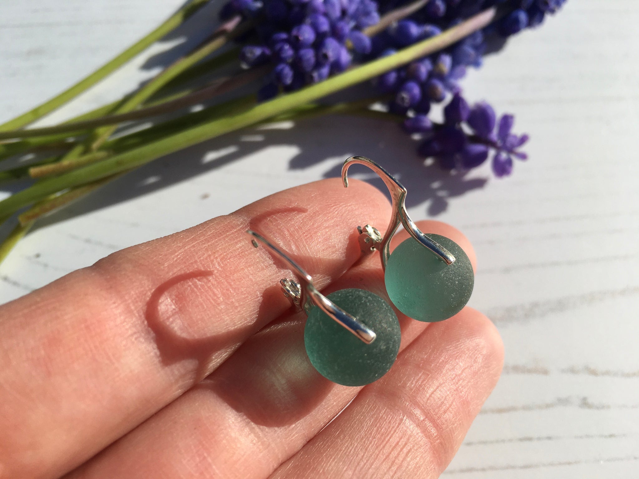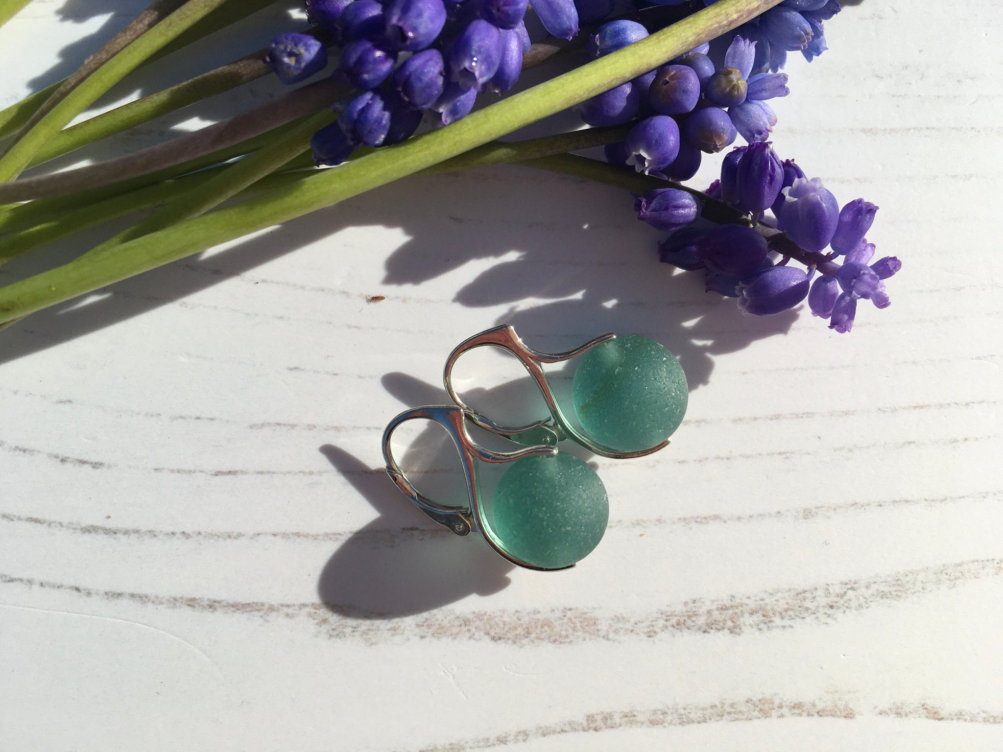 Inside each earring sits a small 12mm sea glass marble... every now and again a marble found its way into the rough Seas off the Japanese coast and were lost for almost 100 years... until they were found and made into lovely jewellery with a history!
