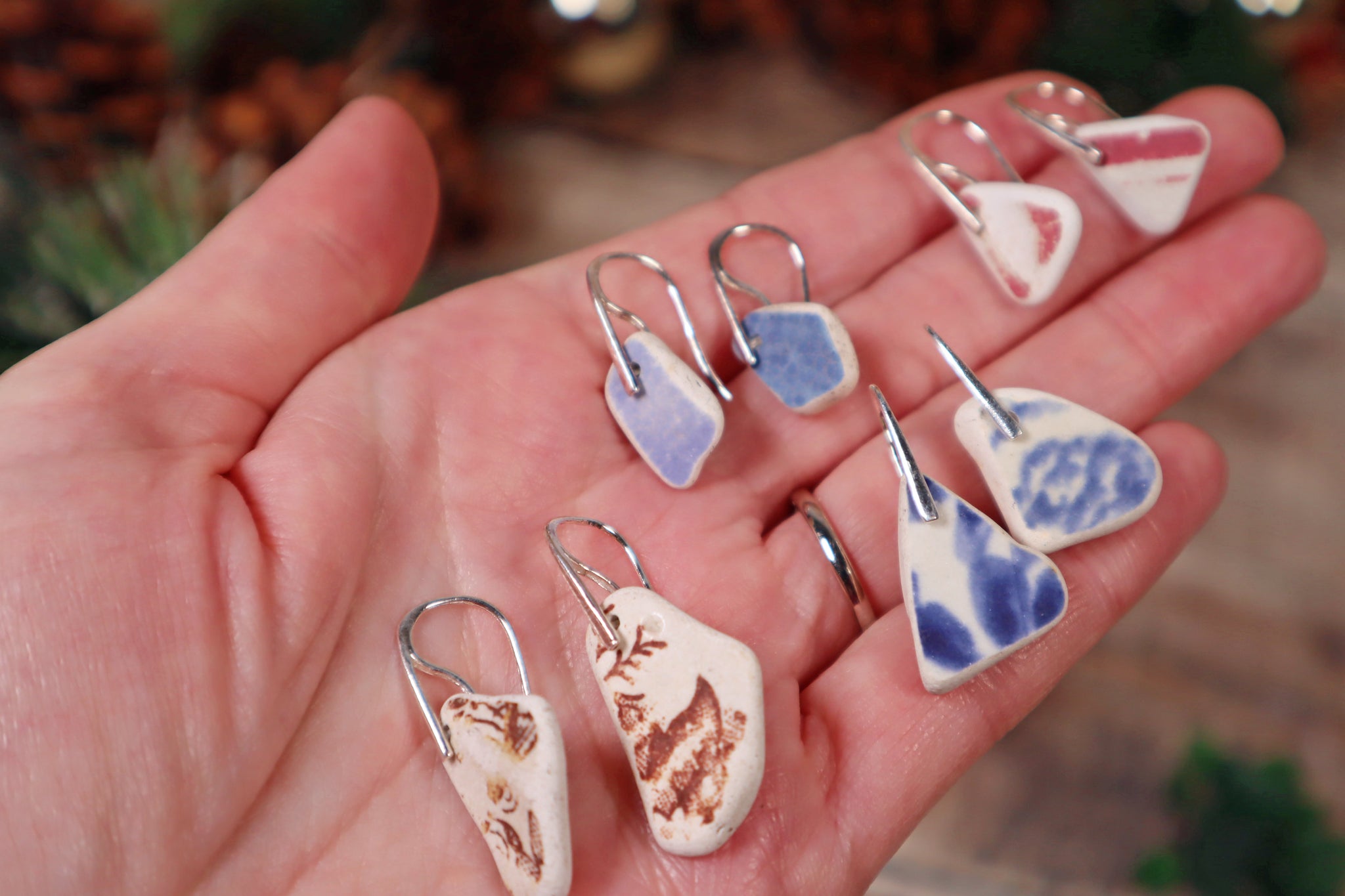 24) Scottish Sea Glass or Pottery Earrings in Sterling silver setting