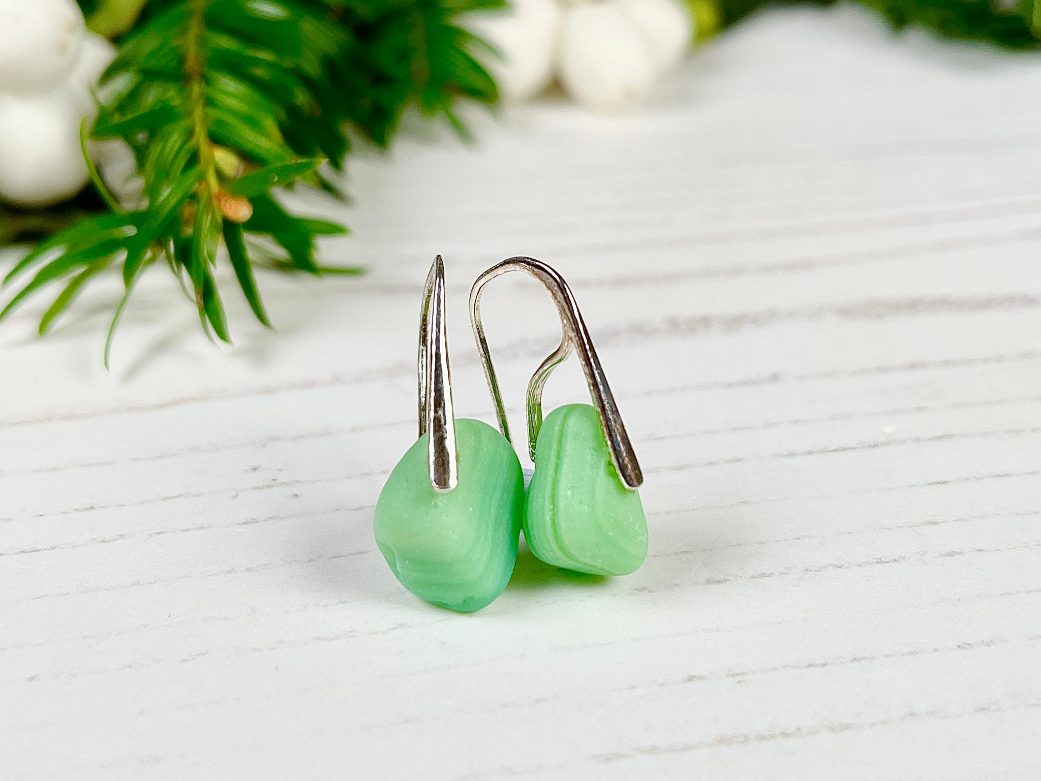 Jadeite Milk Sea Glass Water Drop Earrings, Sterling Silver