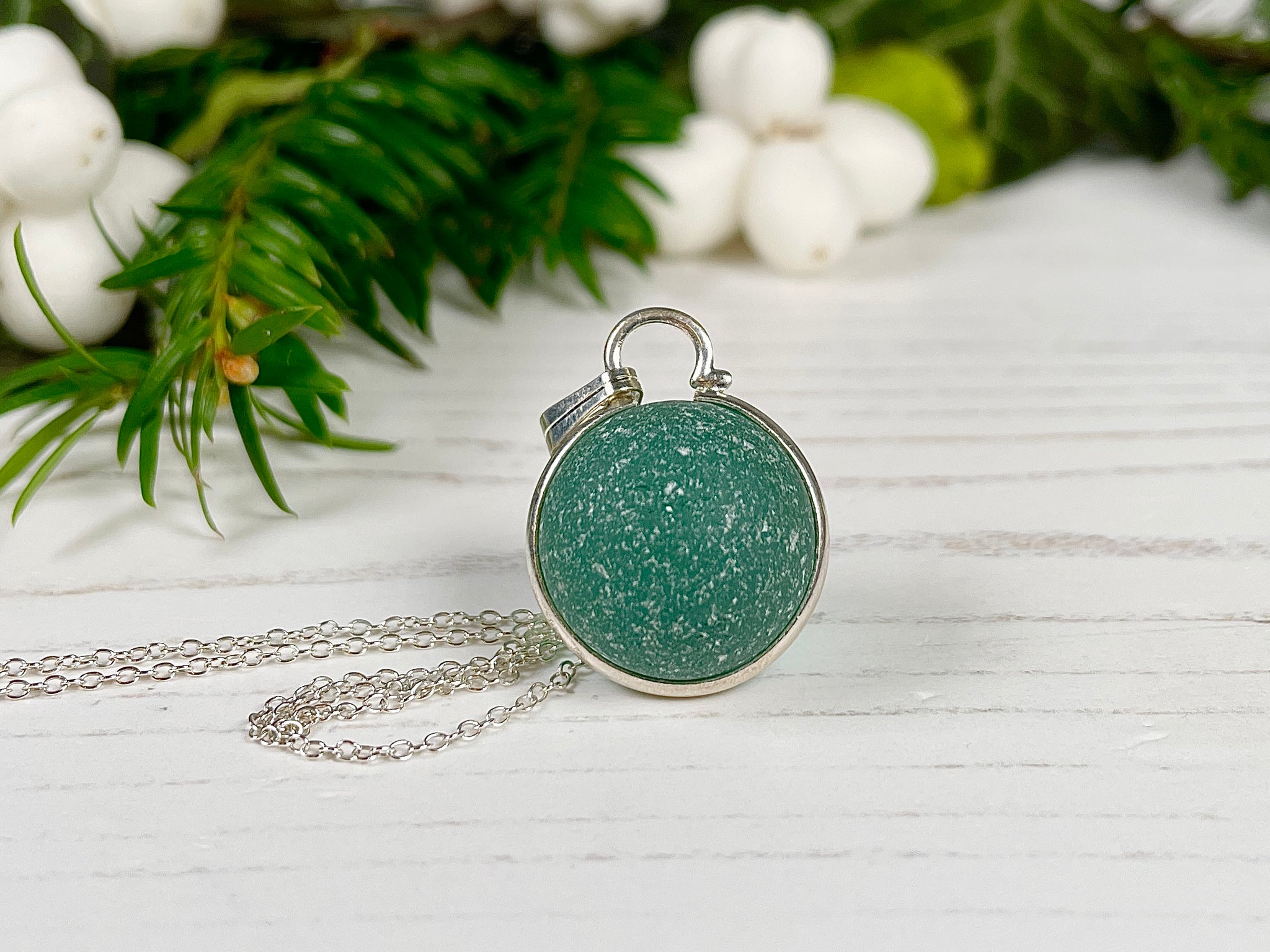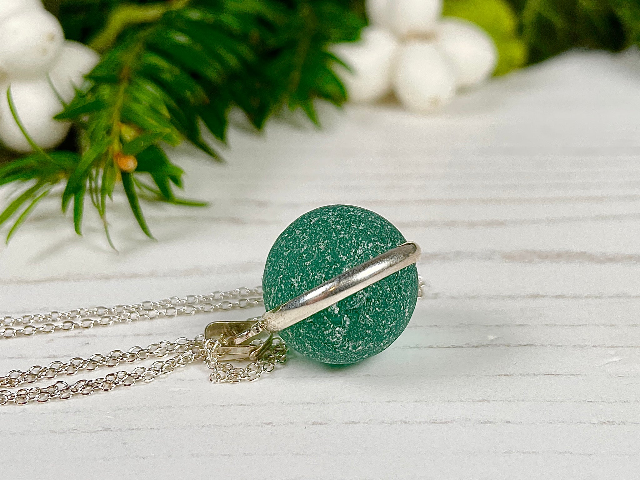 Japanese Sea Glass Marble Necklace, Teal Beach Glass, Sphere Pendant