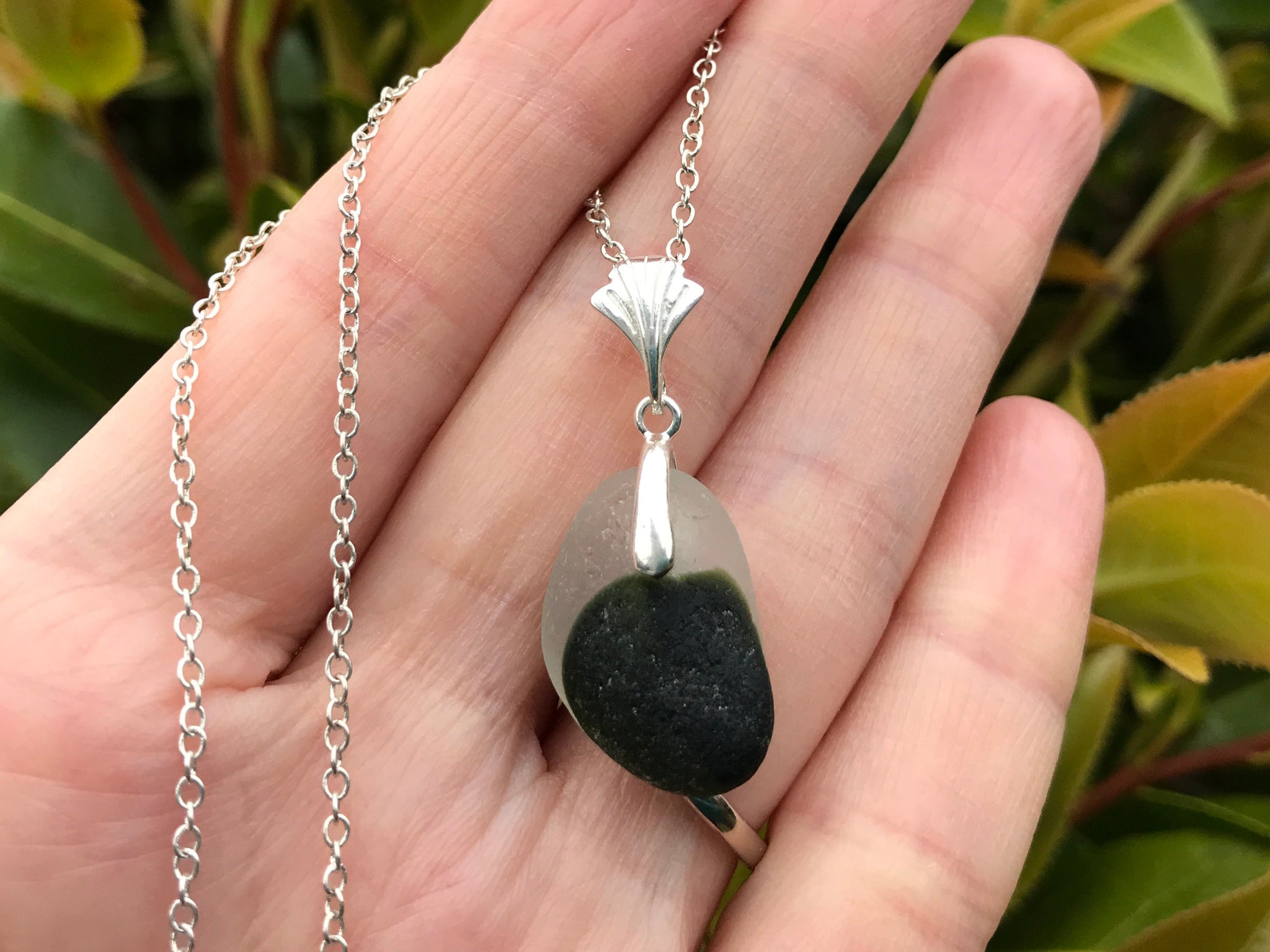 2.8cm approx incl bail, sea glass is approx 2cm - comes with an 18" sterling silver chain.